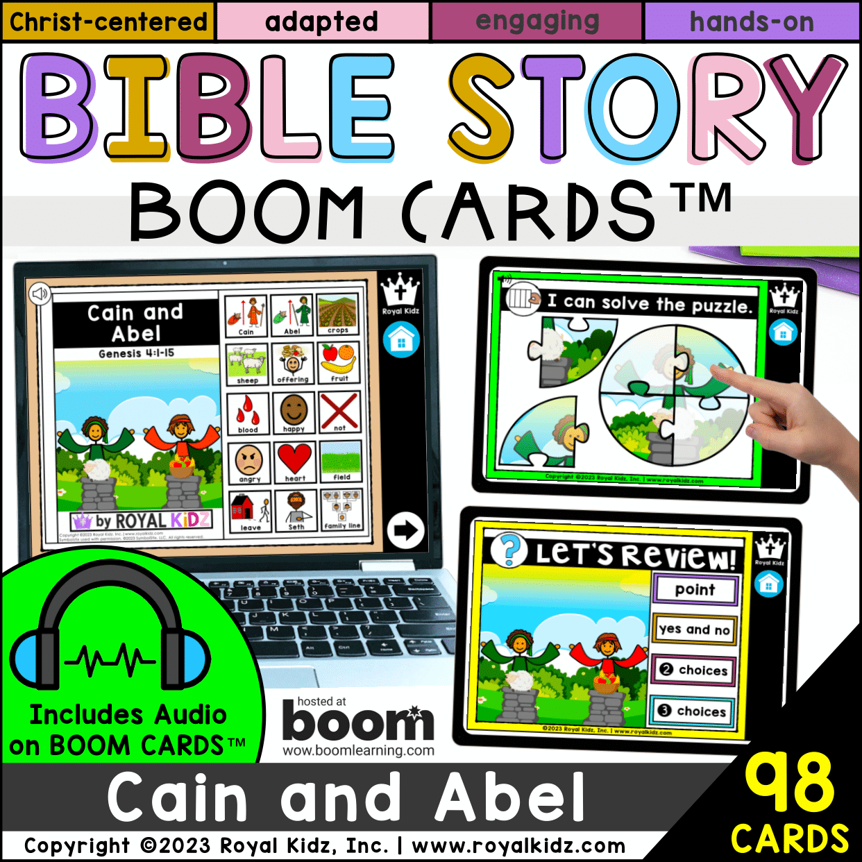Are you looking for interactive resources to help your child be engaged when learning the Biblical Truth of the Bible? The Cain and Abel Bible Boom Cards™ are equipped with visual aids, adaptive elements, and audio features that transform reading the Bible Story from a passive activity into an engaging interaction.