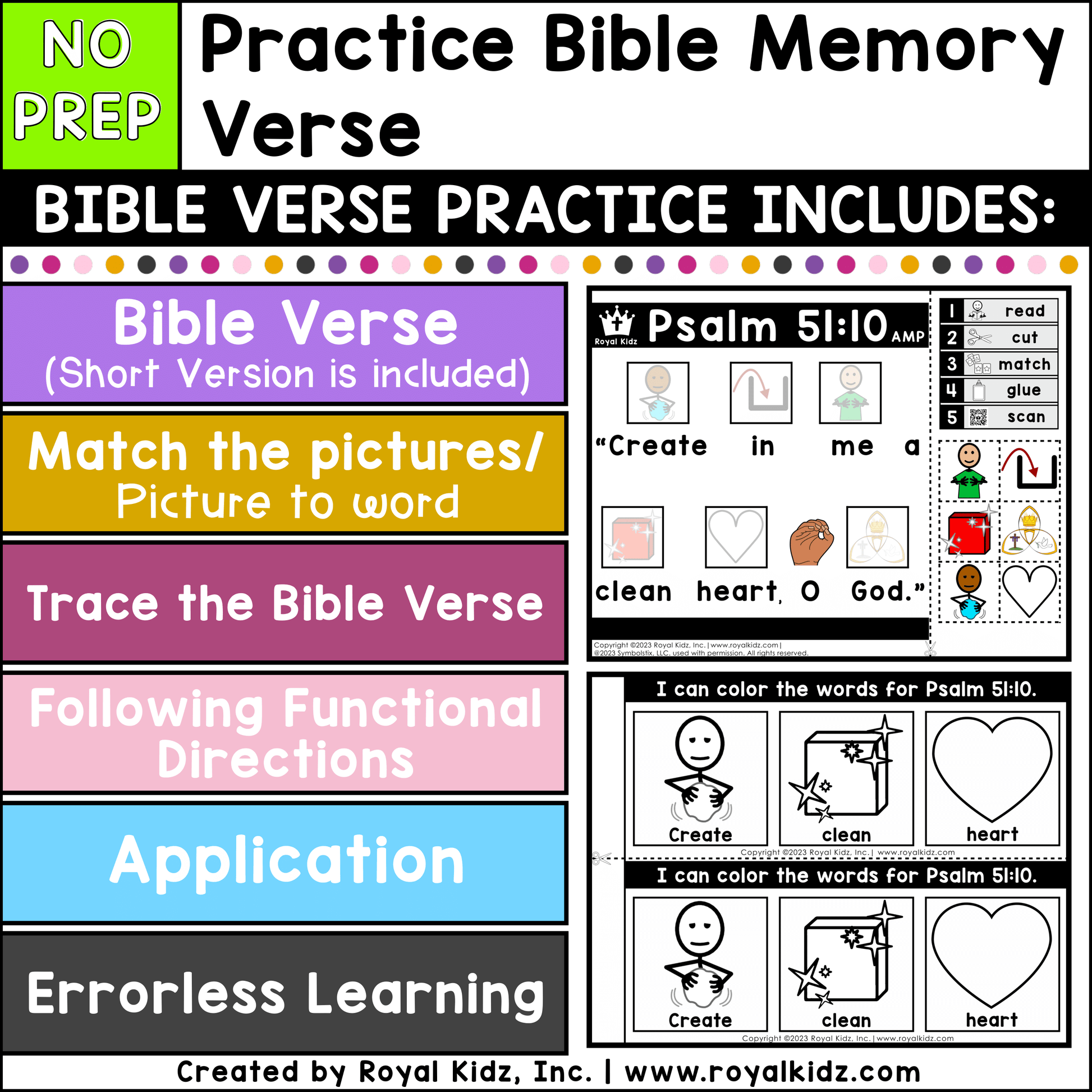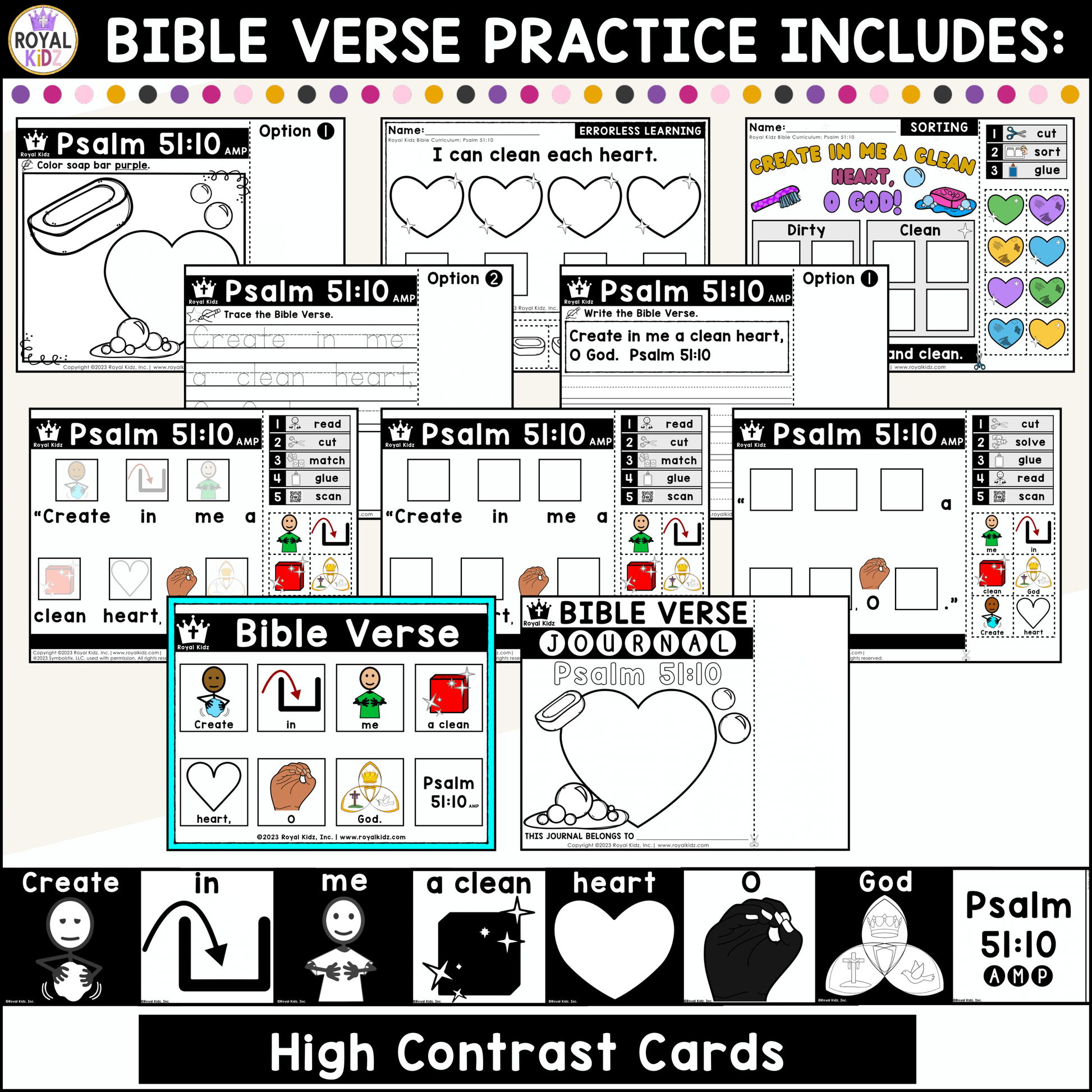 Psalm 51:10 Bible Verse WITH Visual Supports Activities - High Contrast Cards